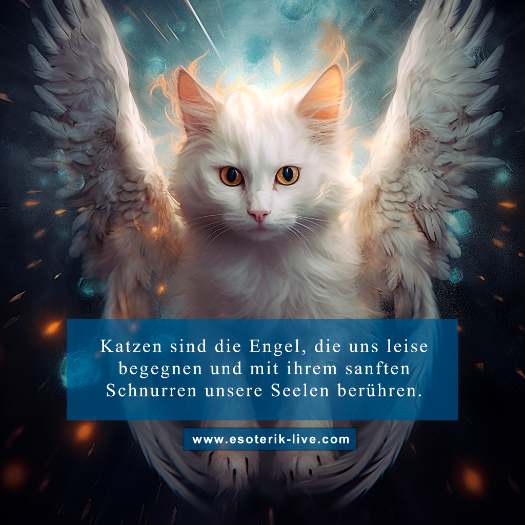 Katzen sind Engel, die auf Erden wandern, Um uns zu erinnern an das Göttliche in uns, an all die Wunder. In ihrer Gegenwart spüren wir Frieden und Harmonie, Denn Katzen sind Engelwesen, gesandt für uns und nie vorbei.